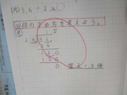 この人は計算ですでに1.5倍という答えを出していますが,さらに図をかいて考えようとしています。