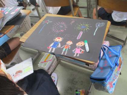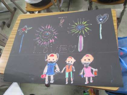 花火を見上げている自分たちは別に描いて画面に貼りました。
