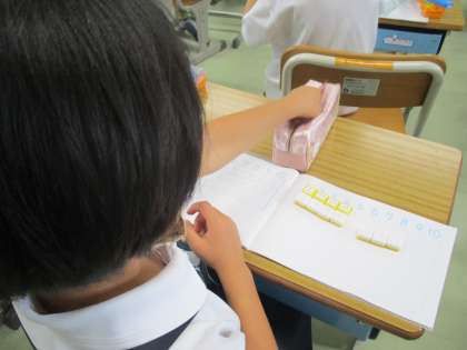 「ちがい」にあたる部分がわかるようにブロックを置いている人もいました。
