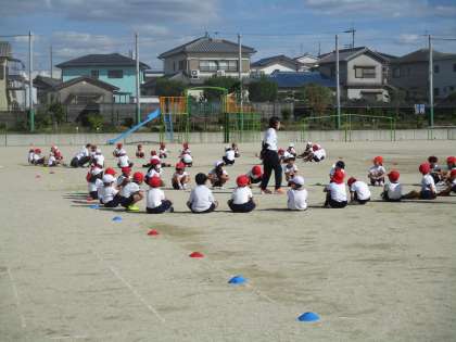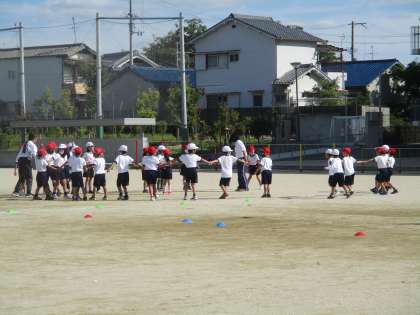 1年 体育参観をめざして 3 公開日 2022/10/11 更新日 2022/10/11 1年 クラスごとに円をつくる場所が決まりました。曲に合わせてこの場所に移動すること,この場所での動き方がこれからの課題です。