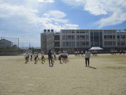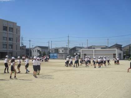 様々な隊形に移動して,動きをかっこよく見せる工夫をしています。できあがりが楽しみです。