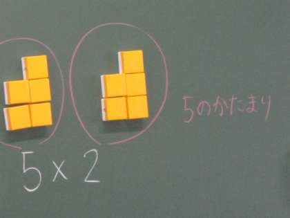 2年 算数 かけ算 9 公開日 2022/10/14 更新日 2022/10/14 2年 ブロックの並べ方を変えてもいいのだろうか・・・という問いも出ました。「5が2つだからいいのではないか」と発言しています。