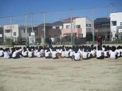 終わりに,先生からの話を聞いています。「やることはすべてやったのだから,あとは全力発揮を」というメッセージでした。明日が楽しみです。