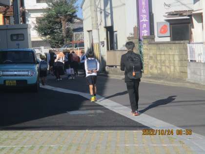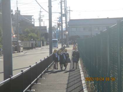 今朝の登校の様子です。晴れて気持ちの良い朝になりました。