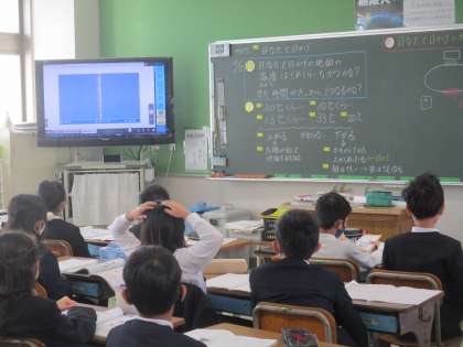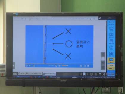 実験に必要な温度計の使い方について,動画を見ているところです。どんな結果が出るのか,実験が楽しみです。