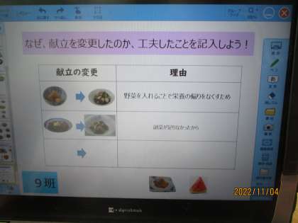6年1組 家庭科 献立をつくる 7