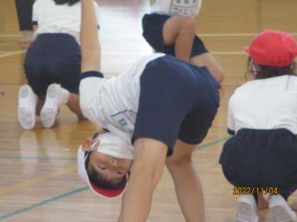 お餅が膨らんでのびているところを全身で表しています。