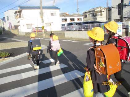 今朝の登校の様子です。冷え込んでいて少し風もあり,とても寒く感じます。