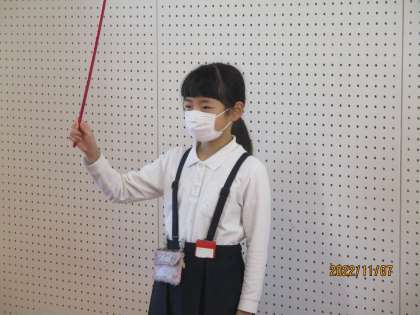 テレビ朝礼の様子です。後期の児童会役員の人たちが進行しています。