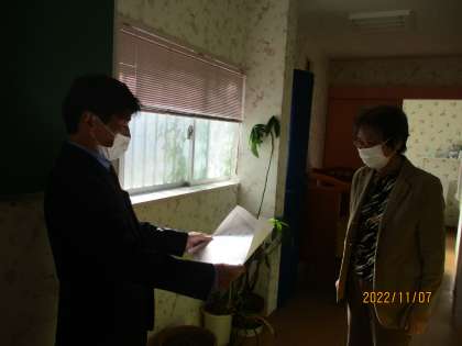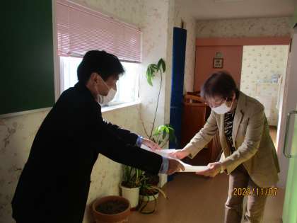 本校の校医として15年間お世話になっている納谷先生に,教育委員会からの感謝状をお渡ししました。