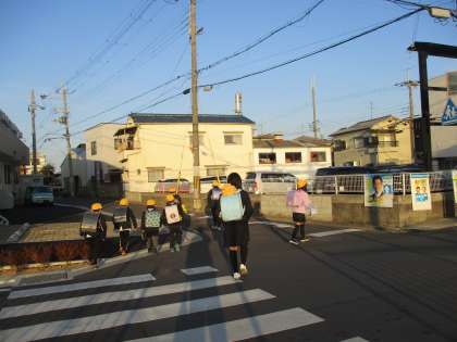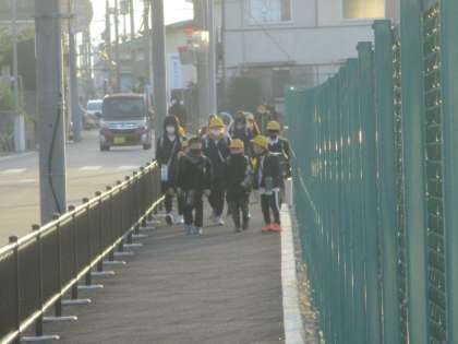 今朝の登校の様子です。今日も冷え込みの強い朝になりました。