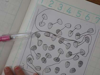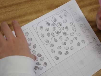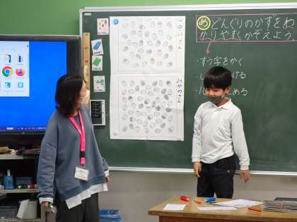 大きな数の学習です。どんぐりの数を数えるのに,2こずつ数えたり,10こずつ数えたりしていました。今までの学習がしっかり生かされています。