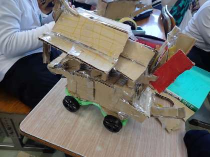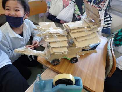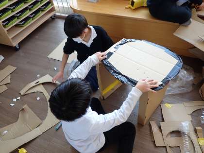 こちらはだんじりチームの様子です。段ボールで作るだんじりは,細かい部分まで表現されていました。