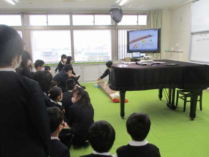 5年音楽の学習です。和楽器の楽曲を鑑賞します。