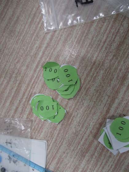 同じ種類の「お金」をまとめて,その枚数を数えて,合計を出そうとしています。全部でいくらあったのでしょうか。
