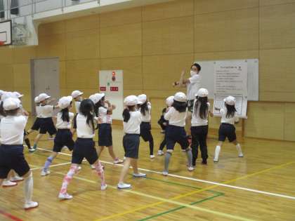 1年体育のマット運動の学習です。準備も協力してスムーズにできていました。