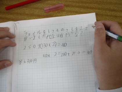たし算とかけ算を使う問題をつくりました。
