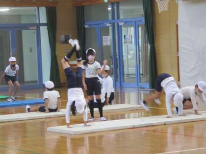 グループごとにマットを割り当て,感覚を身につけるために何度も試せるようにしています。