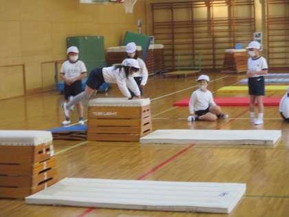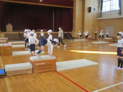 メインのとび箱の練習に移りました。各自の課題にあった場を選んで練習しています。