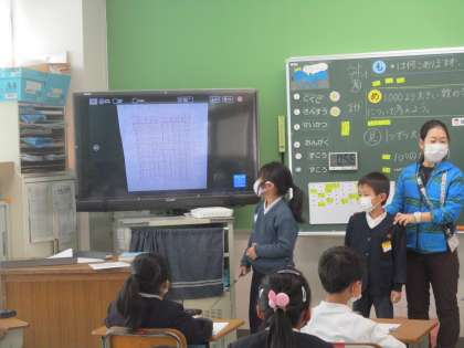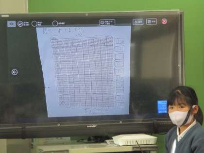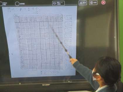 大型テレビを使って,考え方をみんなに伝えています。