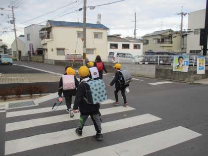 今朝の登校の様子です。日差しが弱く,寒い朝です。