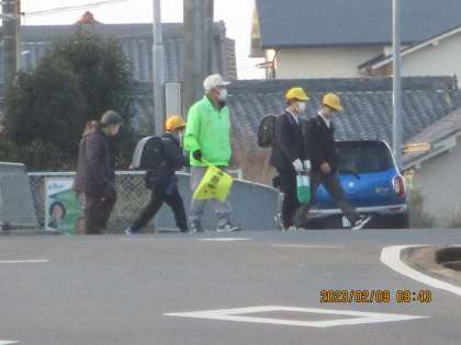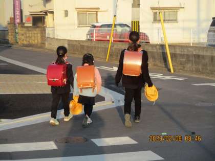 今朝の登校の様子です。日差しもあり,春の到来を思わせる穏やかな朝です。