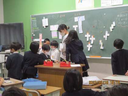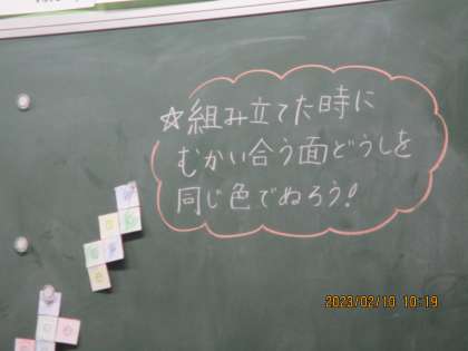 できあがった展開図は、パターンごとに分けて黒板にはっていました。