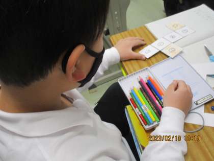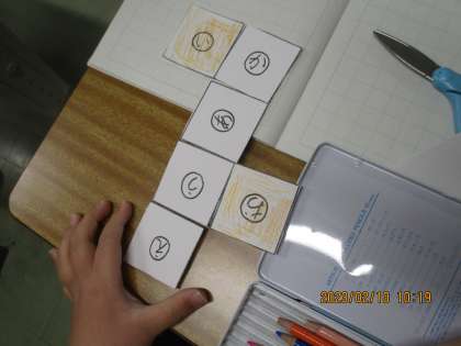 「い」と「お」が向かい合う面です。展開図ではこんなにはなれた場所にある面ですが、組み立てると向かい合う面になります。