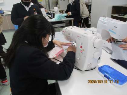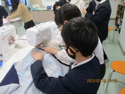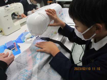 みんな上手にミシンを使っていました。エプロンの完成が楽しみですね。
