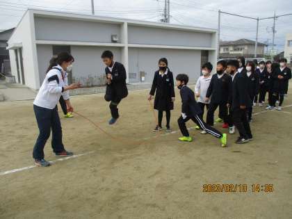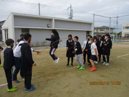 堺市のチャレンジランキングに挑戦している4年4組です。1分間で何回跳べるかがランキングされます。