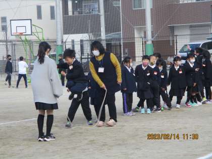 学級閉鎖があって延期になっていた1年の長なわ大会です。本番前の練習の様子です。