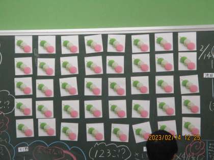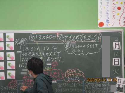 3年算数のかけ算の学習です。3色だんご40本のだんごの個数が問題です。