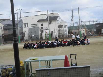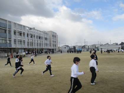 避難訓練の様子です。休み時間に地震から火事が発生してという想定です。