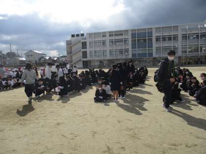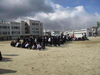 全員が無事避難できているのか、確認しているところです。みんな真剣に訓練に参加していました。この後、教室にもどって、訓練をふりかえりました。