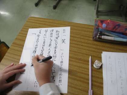 4年生が未来への会をめざして取組を進めています。今の自分の思いを漢字1文字で表しています。
