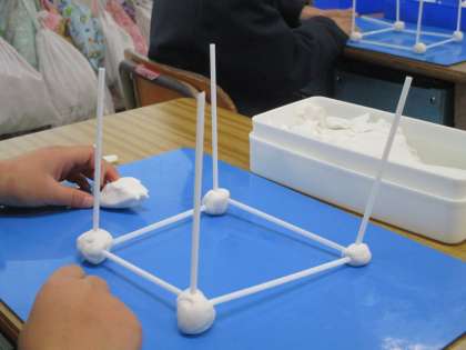 こういうふうに作っていくと、平面に高さがあるものが立体だということが実感できます。体積が底面積×高さで求められることにつながっていきます。