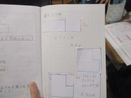 1つの考えで答えが出たら、別の考え方にも挑戦していました。