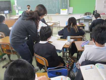 先生は一人一人の学習の様子をよく見て、必要に応じてアドバイスしています。