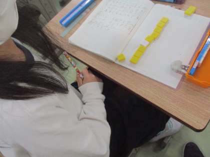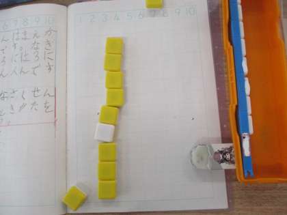 前から6番目の「なぎささん」を、ブロックの色を白にかえて表しています。
