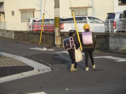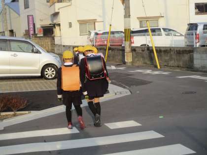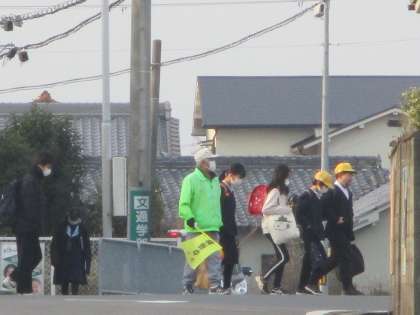今朝の登校の様子です。すっきりと晴れてはいませんが、冷え込みのない穏やかな朝です。