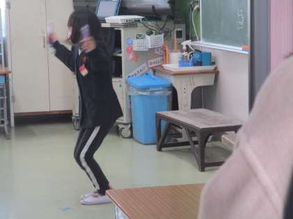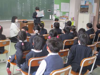 本日は学習参観です。混雑を避けるため、今回も2時間に分けて行っています。1年1・2組の様子です。この1年間に学んでできるようになったことを発表しています。