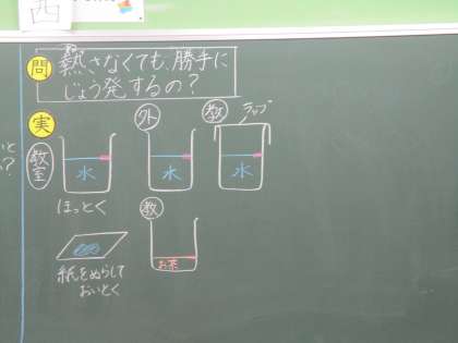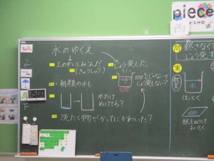 4年理科の学習です。身の回りにある水のゆくえについて考えています。
