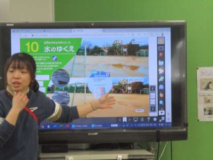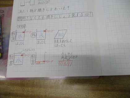運動場に降った雨の水はしみこむだけか、蒸発しているのか。調べる方法を考えています。