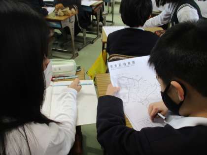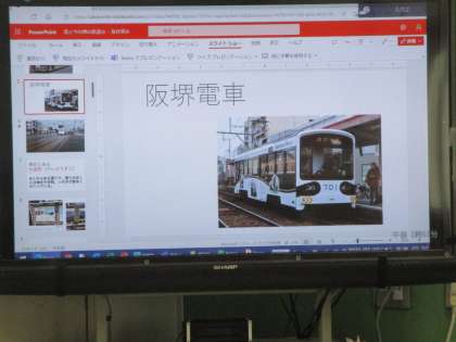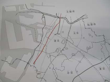 まずは阪堺電車の路線を白地図に赤線でかきました。