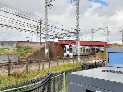 写真の人の説明通り、いわゆる「立体交差」になっています。上を通るのが阪堺電車で、下を南海本線が通っています。楽しい学習でした。