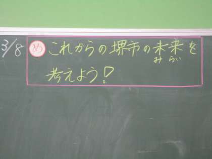 3年社会の学習です。堺市のことを学んできた最後に、堺の未来について考えることにしました。