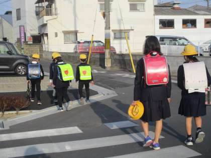 今朝の登校の様子です。今日も暖かい朝になりました。