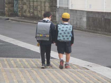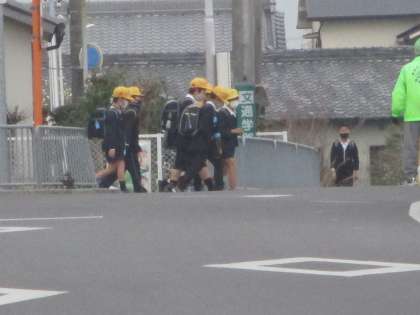 今朝の登校の様子です。薄曇りですが、暖かい朝です。