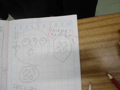 1人分を1つのお皿に入れることで、何人に分けられるのかを分かりやすく表しています。