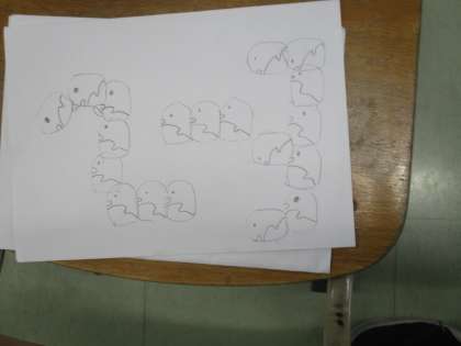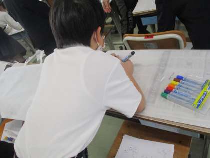 図工の作品の袋に「2−3」のロゴをデザインして描こうとしています。